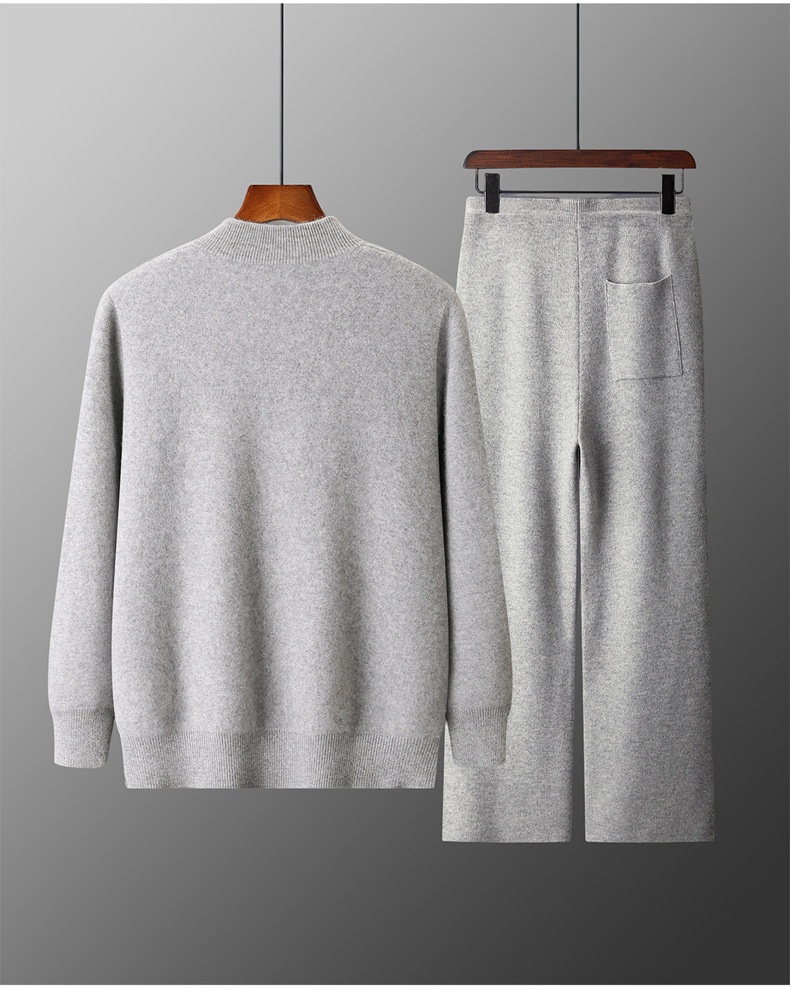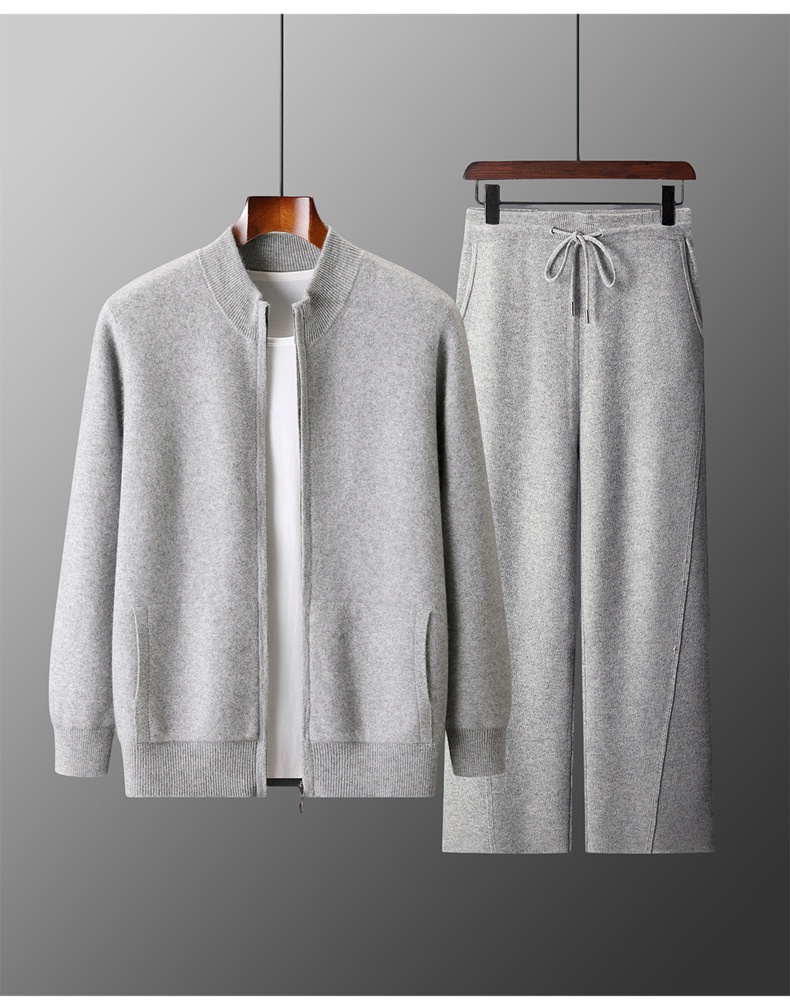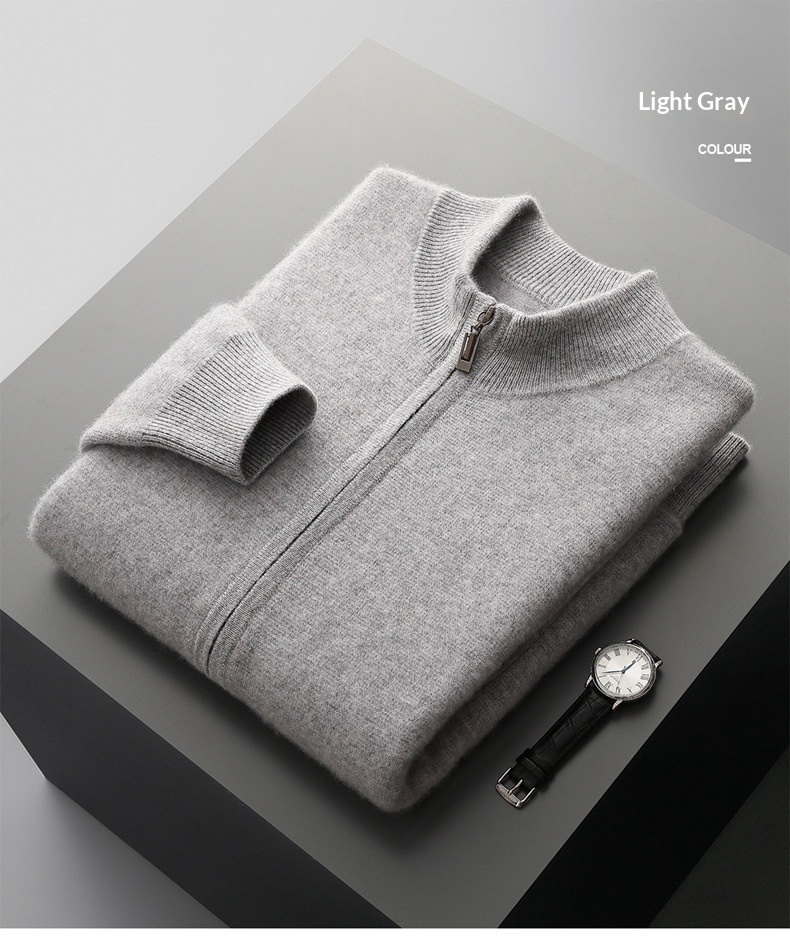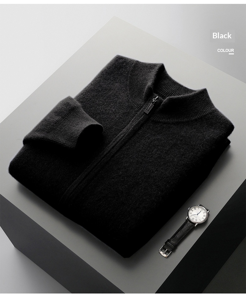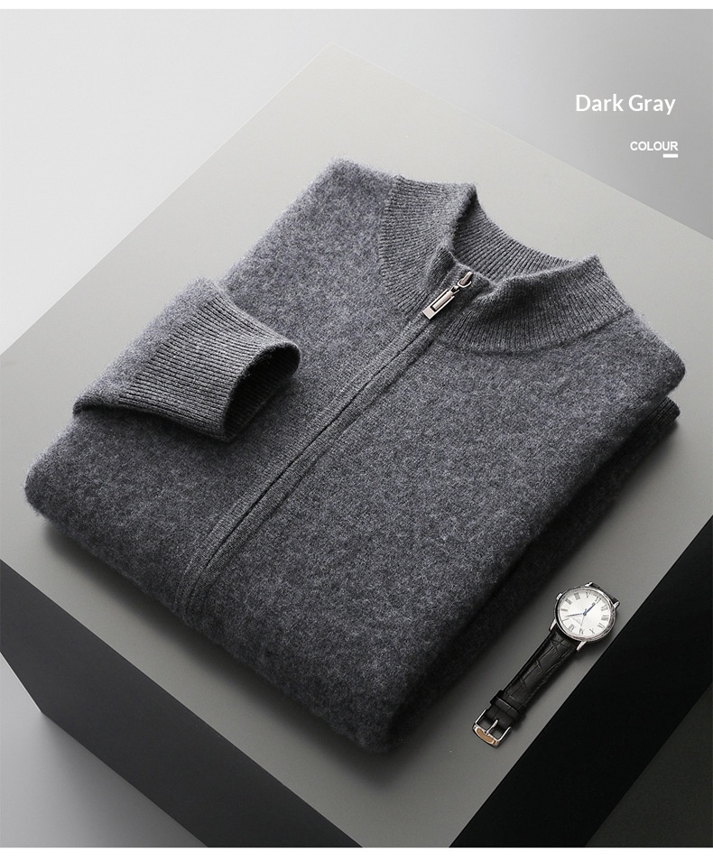 Business Mens Casual Double-Faced Wool Knit Sweater With Zipper In Solid Colors