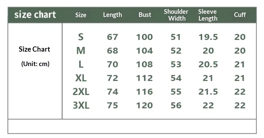 1. Asian sizes are 1 to 2 sizes smaller than European and American people. Choose the larger size if your size between two sizes. Please allow 2-3cm differences due to manual measurement. 2. Please check the size chart carefully before you buy the item, if you don't know how to choose size, please contact our customer service. 3.As you know, the different computers display colors differently, the color of the actual item may vary slightly from the following images.