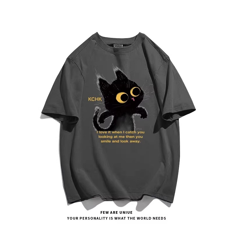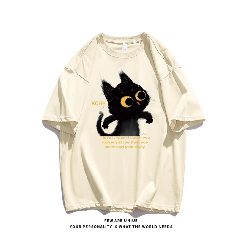 Cute Animal Print Black Cat Loose Fitting Versatile Top For Instagram