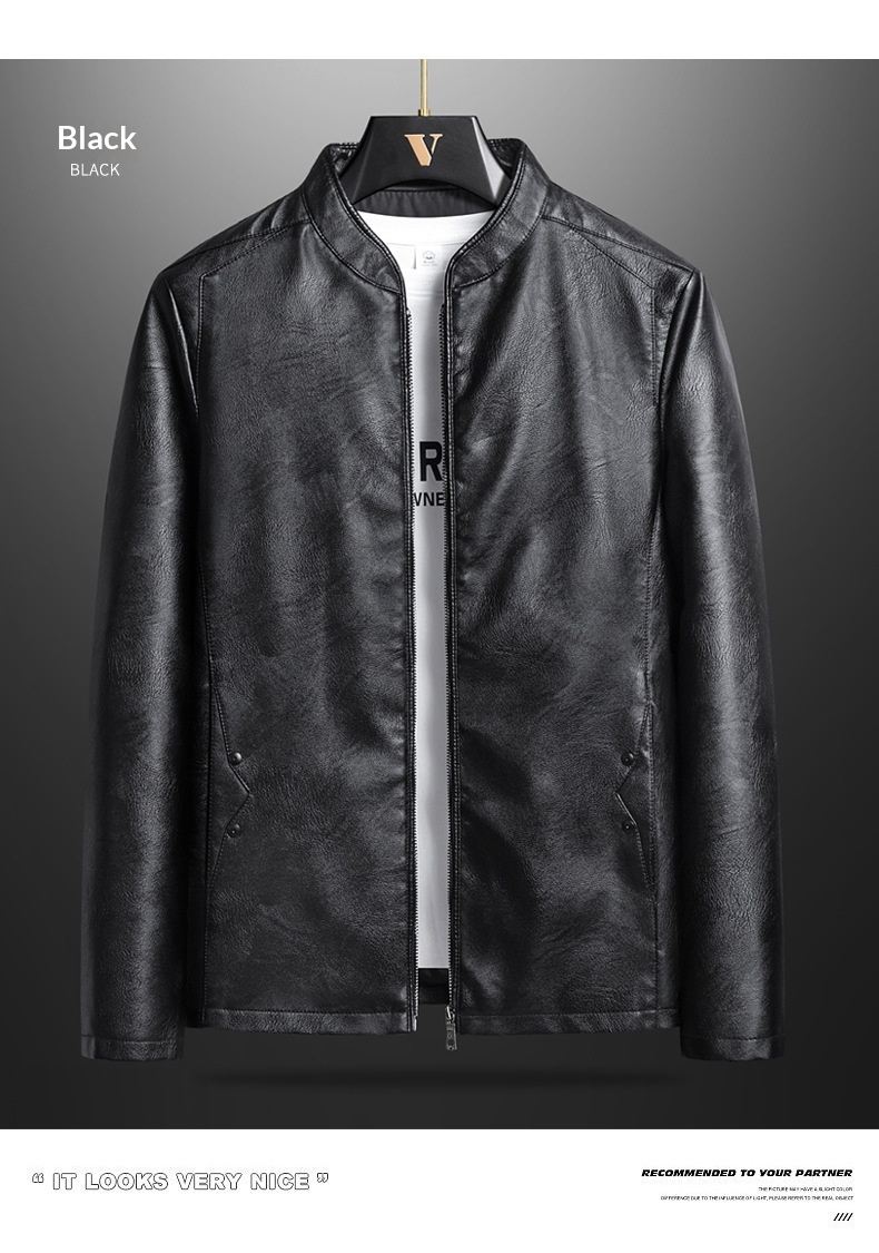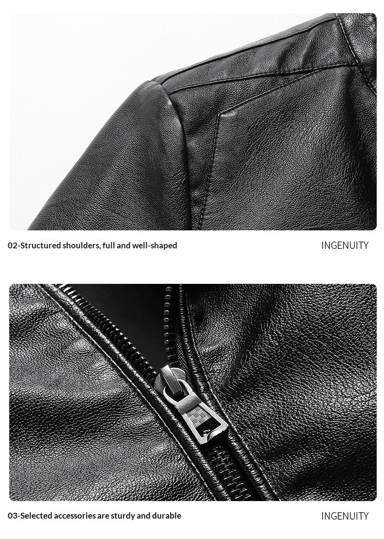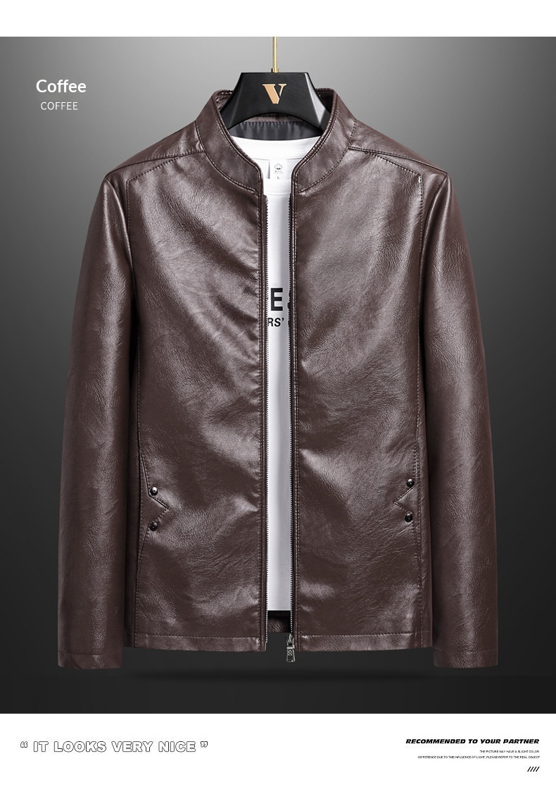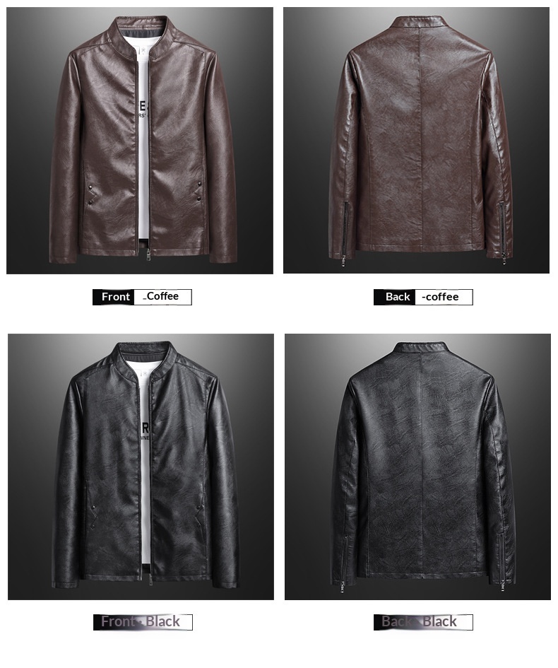 Mens Biker PU Leather Stand-Up Collar Slim-Fit Stylish Leather Jacket