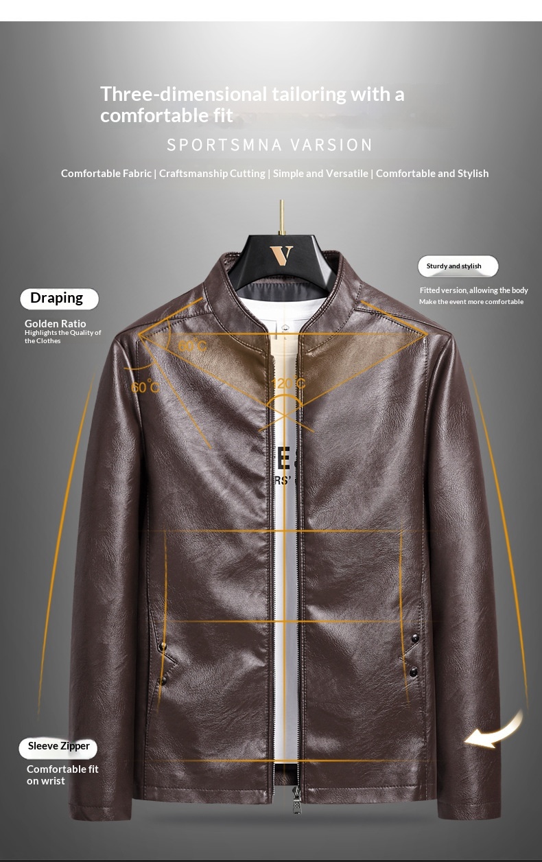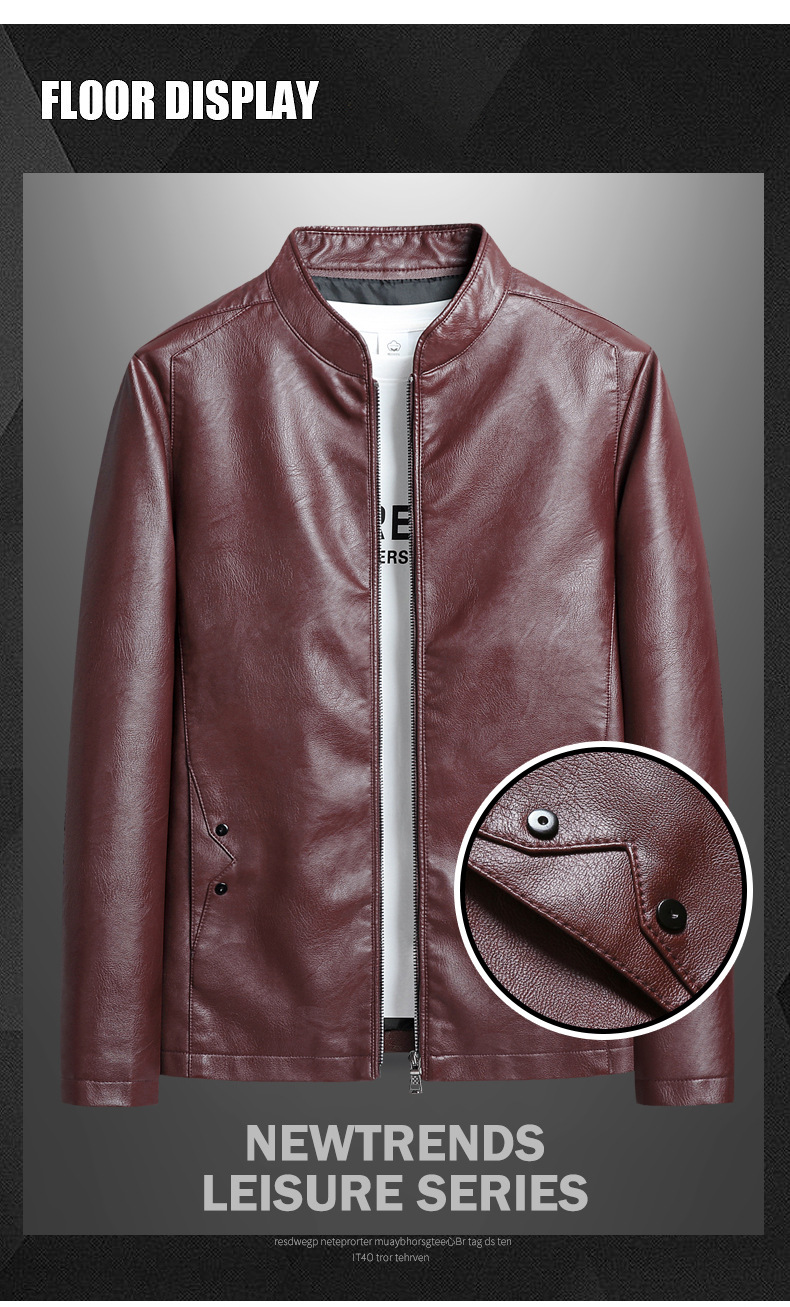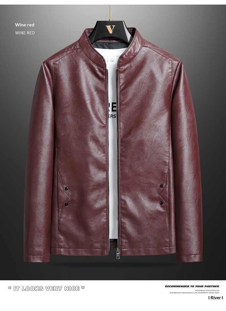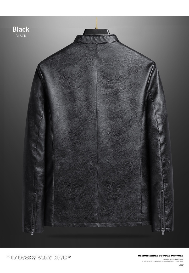 Mens Biker PU Leather Stand-Up Collar Slim-Fit Stylish Leather Jacket