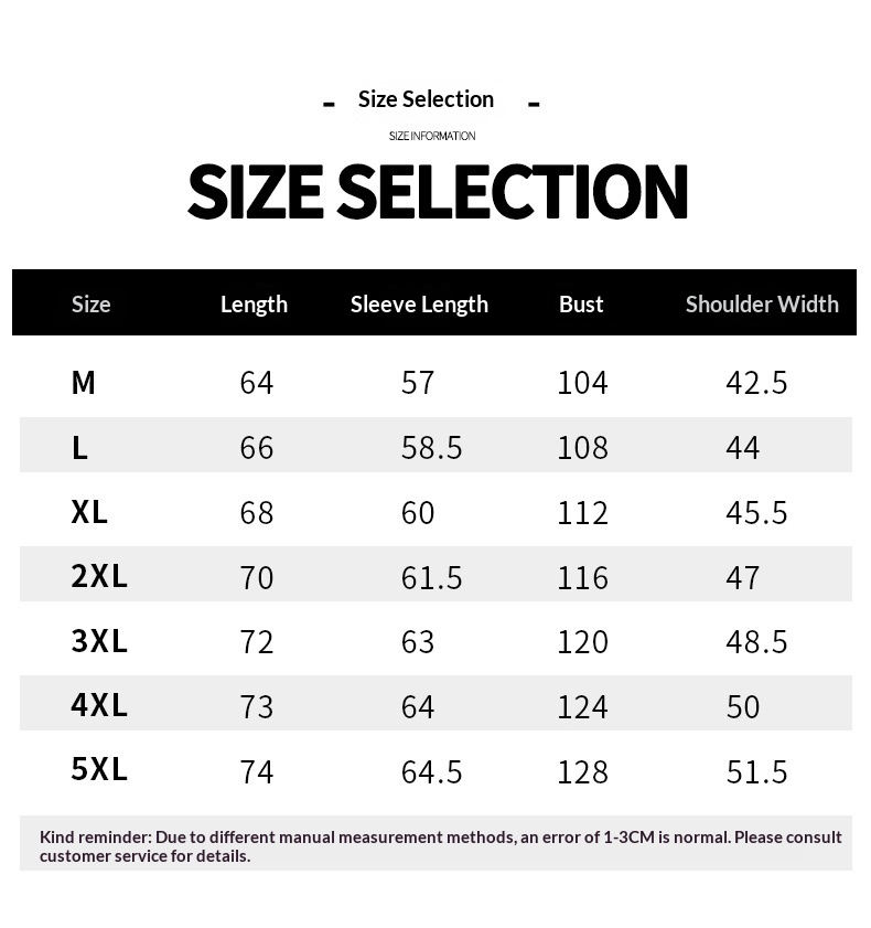 Sizes: M, L, XL, 2XL, 3XL, 4XL, 5XL, 6XL