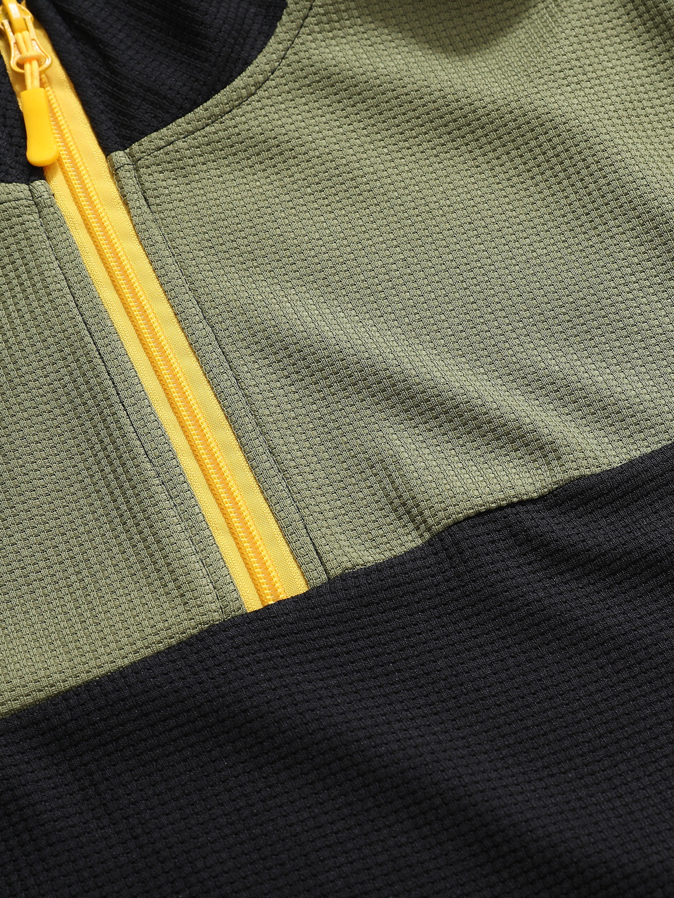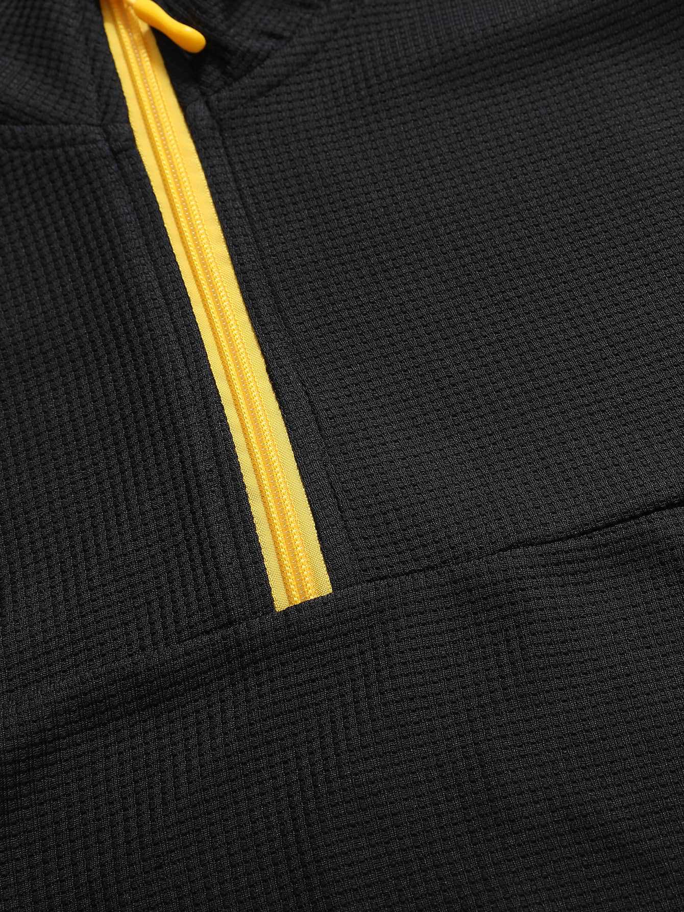 Mens Casual Sporty Color-Block Long-Sleeve Turtleneck Half-Zip Top