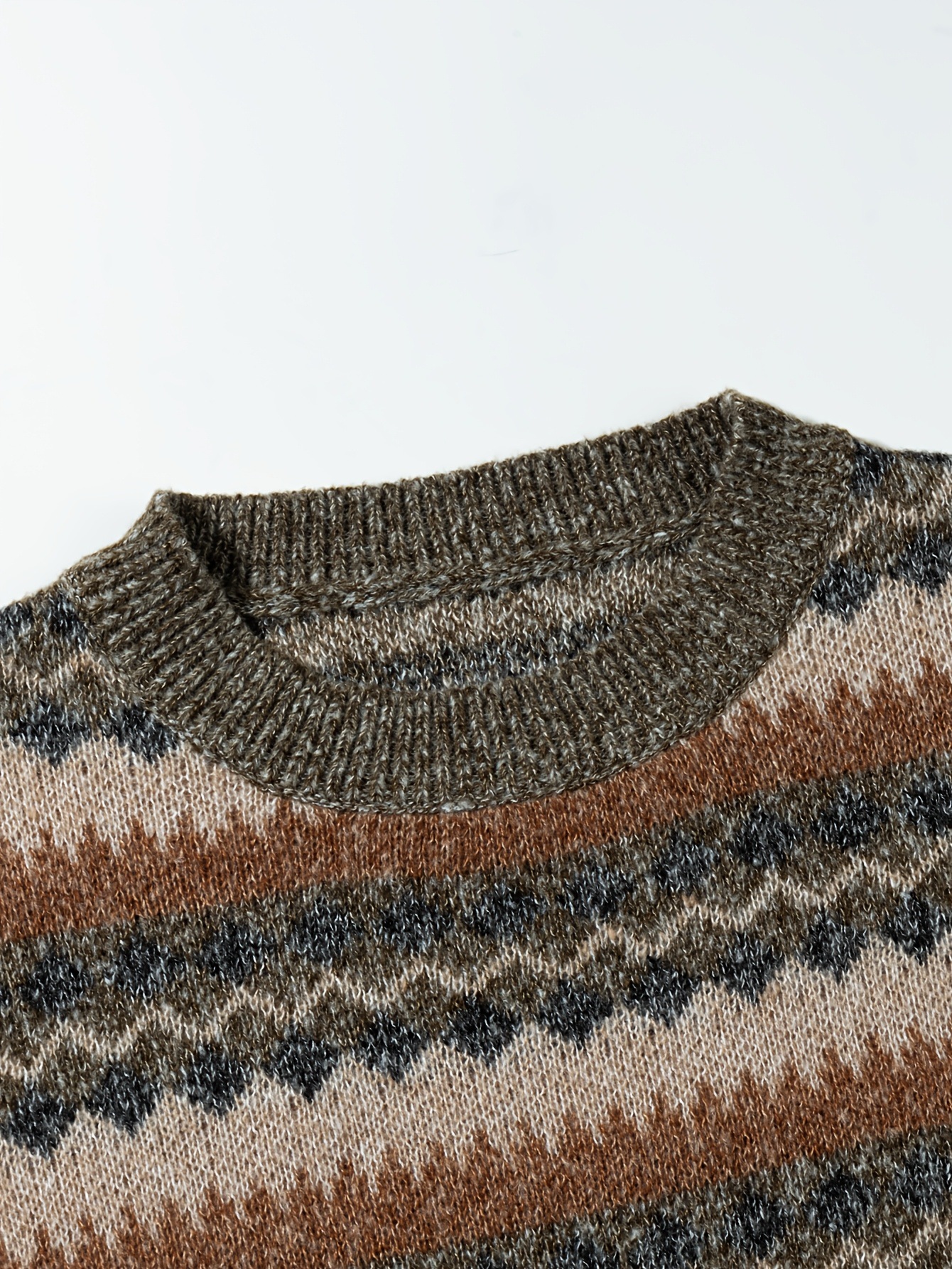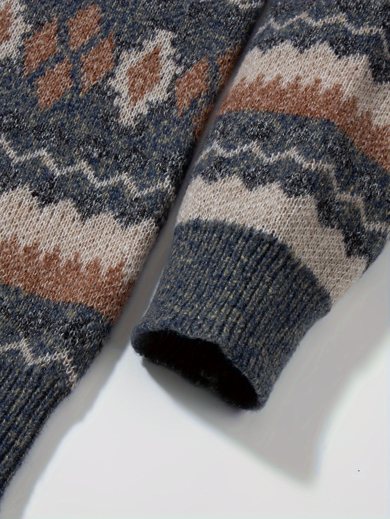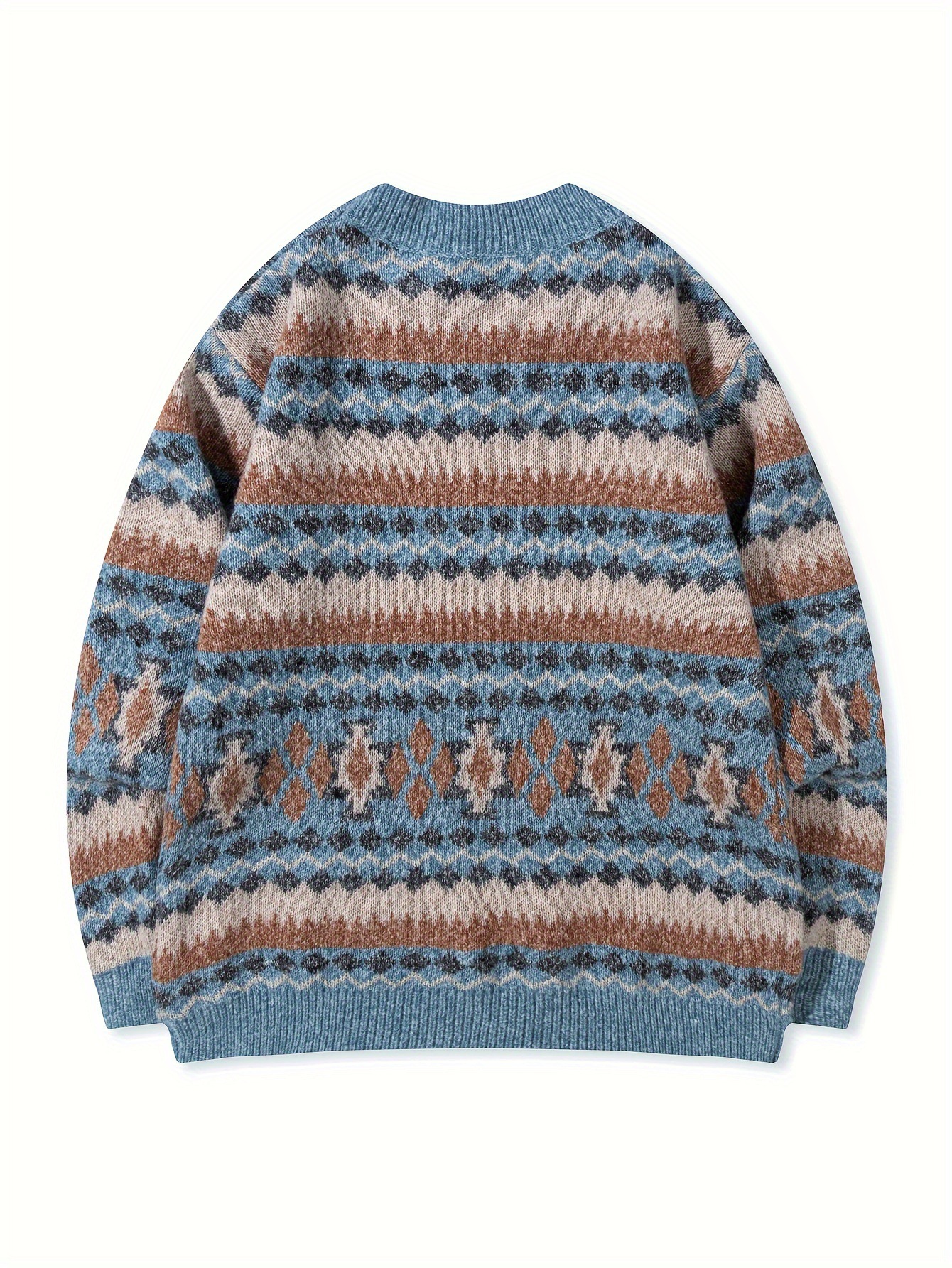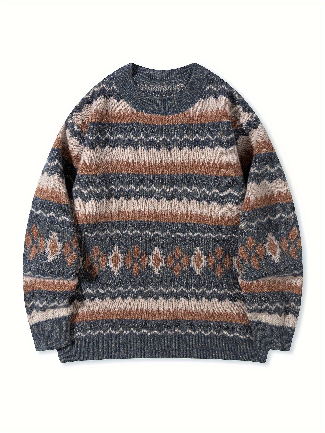 Mens Thickened Crew-Neck Pullover Sweater With Printed Design And Relaxed Fit